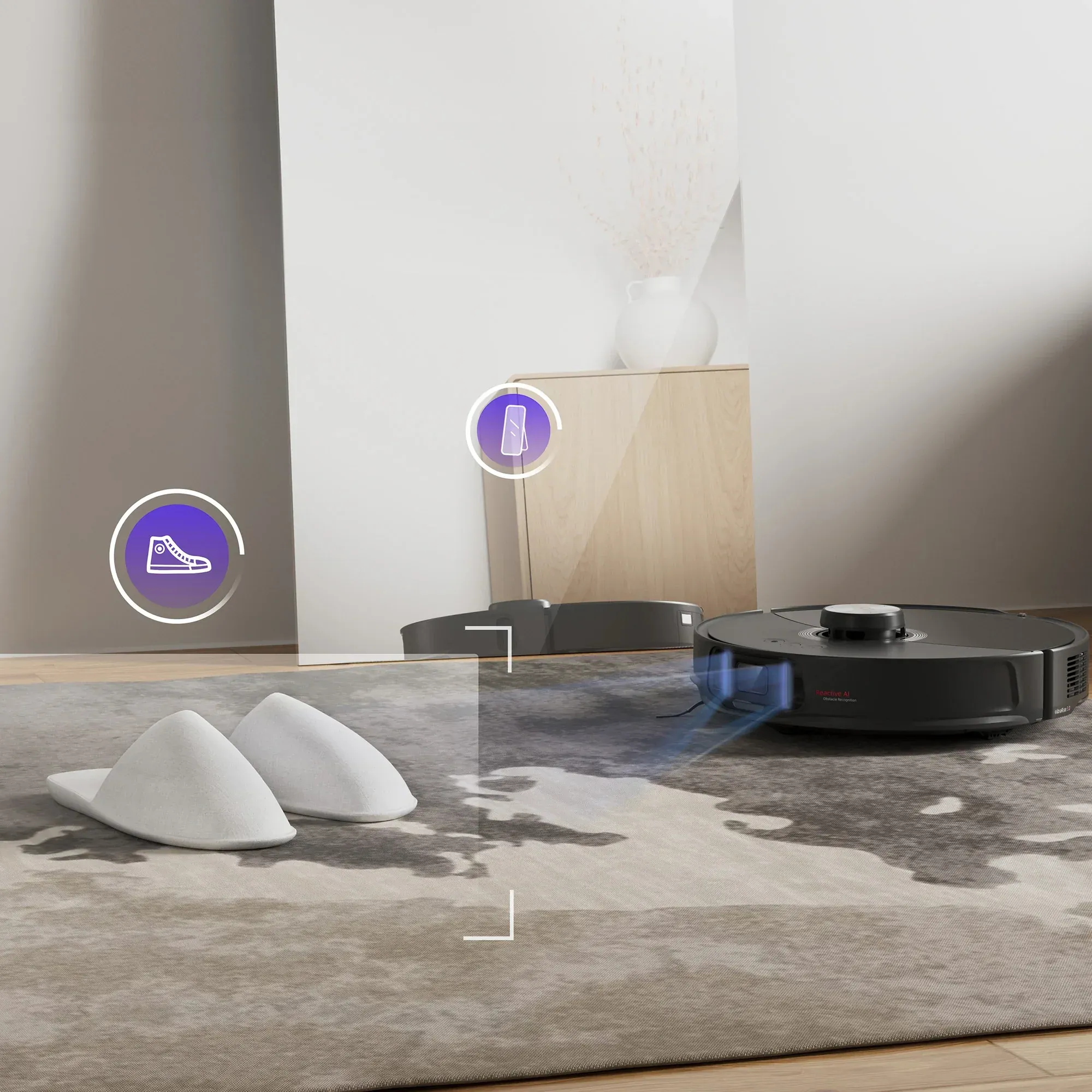 Robot hút bụi áp dụng chiến lược tránh vật tối ưu, nhận dạng lên đến 73* loại vật thể bao gồm đồ dùng cho thú cưng và gương, nhờ vào camera RGB và cảm biến ánh sáng cấu trúc 3D.